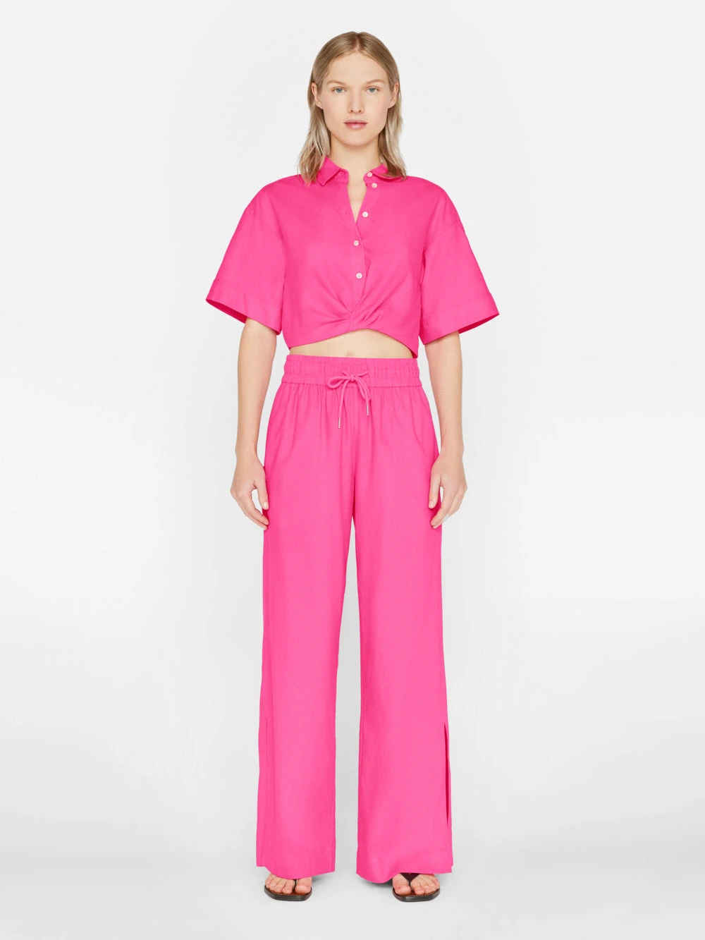 SKU: ZNJHB 7301287903408 Categories: Clothing & Accessories, Tops & Blouses Tags: _badge:july23_FP_sitewide, Clr-dscrp::FLAMINGO, Collection::all sale, Collection::sale tops, Collection::tops & blouses, Collection::women, Collection::womenclothing, Color-code::FLAM, Delivery::SU23_D1, Filter-color::Pink, Filter-size::L, Filter-size::M, Filter-size::S, Filter-size::XL, Filter-size::XS, Filter-sleeve::SHORT SLEEVE, Filter-style::NA, Filter-top::Cropped, Fit:true, FLOW_INTL, FLOW_US, InventoryClassification::SU23, JUL23SITEWIDE, JUNE2023INTL, Non-exclusion, Remove New Tag, Republish_8.8.23, Season::SU23, Style-code::LWSH2828, Styled::drawstring-lounge-pant-flamingo, Styled::le-marcel-sandal-noir, Swatch:Cropped Twist Front Shirt-sale, Topsize