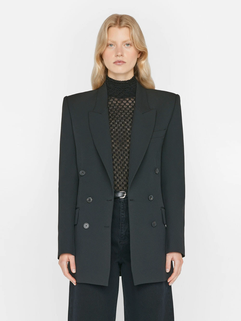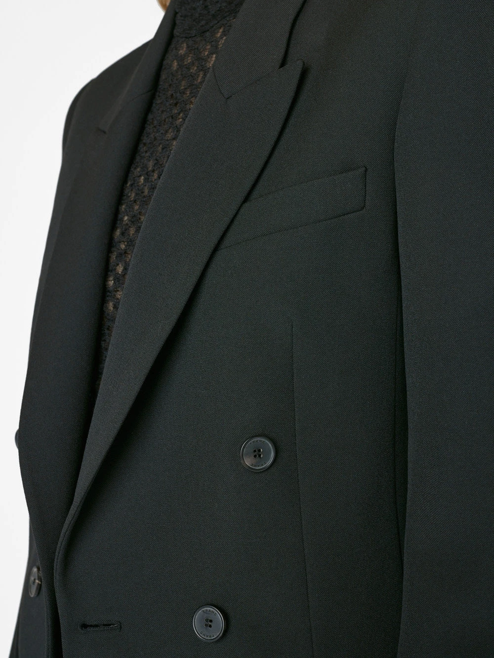 SKU: ZNJHB 7348239794352 Categories: Clothing & Accessories, Jackets & Coats Tags: _badge:july23_exclusions_sitewide, _badge:waitlist, Clr-dscrp::NOIR, Collection::jackets & coats, Collection::new women, Collection::women, Collection::womenclothing, Color-code::NOIR, Delivery::F23_D2, Filter-color::Black, Filter-sleeve::BLAZER, Filter-style::NA, Fit:true, FLOW_INTL, FLOW_US, InventoryClassification::F23, Non-exclusion, Non-Sale, Season::F23, Style-code::F23HBZ03, Styled::extra-long-barrel-film-noir, Styled::mesh-lace-turtleneck-noir, Swatch:Double Breasted Slim Blazer, Waitlist
