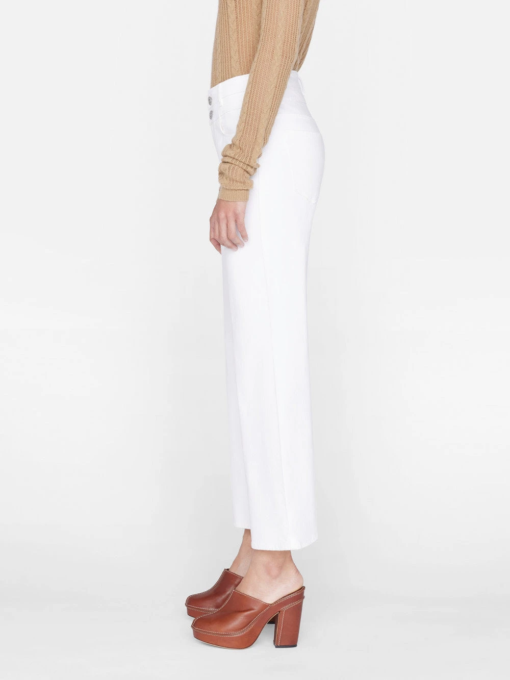 Bestselling Le Palazzo Crop designed with double waistband detailing, high rise waist, generous wide leg, and clean cropped hem. Crafted from a premium comfort stretch sustainable denim.