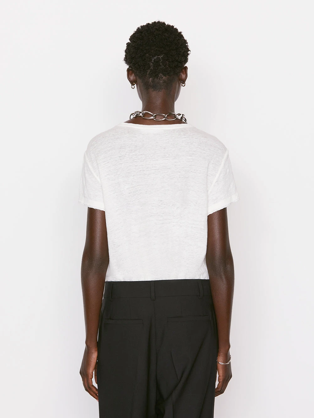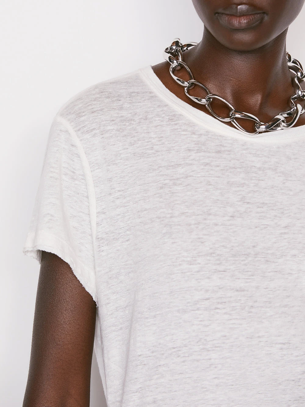 Crafted from light, breathable 100% organic linen for an elevated finish, this essential tee is slightly fitted through the body for the perfect fit. Even the short sleeves are cut to flatter—making this everyday tee a go-to for a laid-back yet pulled-together aesthetic.