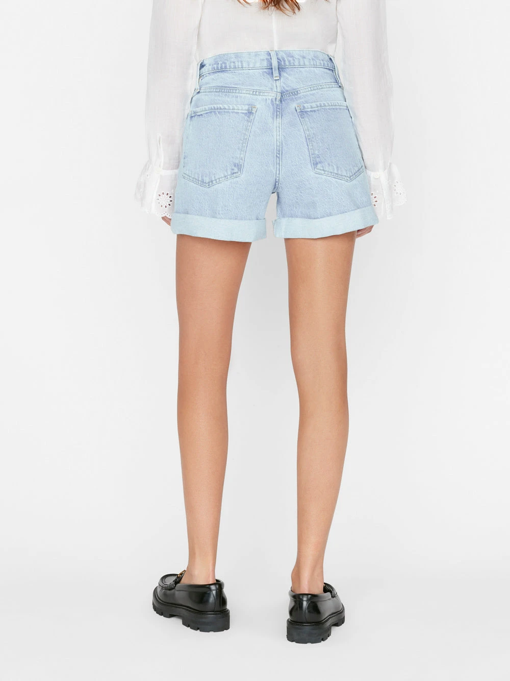 Please note: This is a Sale style. A $12 restocking fee applies for any return that includes Sale styles, deducted from the refund total. With a curve-highlighting high-rise waist and a clean-cut cuffed hem, this light indigo short is perfect for preppy moments, pairing with cropped tops, or pulling on over bikini bottoms for beach days. Crafted from comfort stretch denim, this fit won’t bunch, bag, or ride up when you sit down.