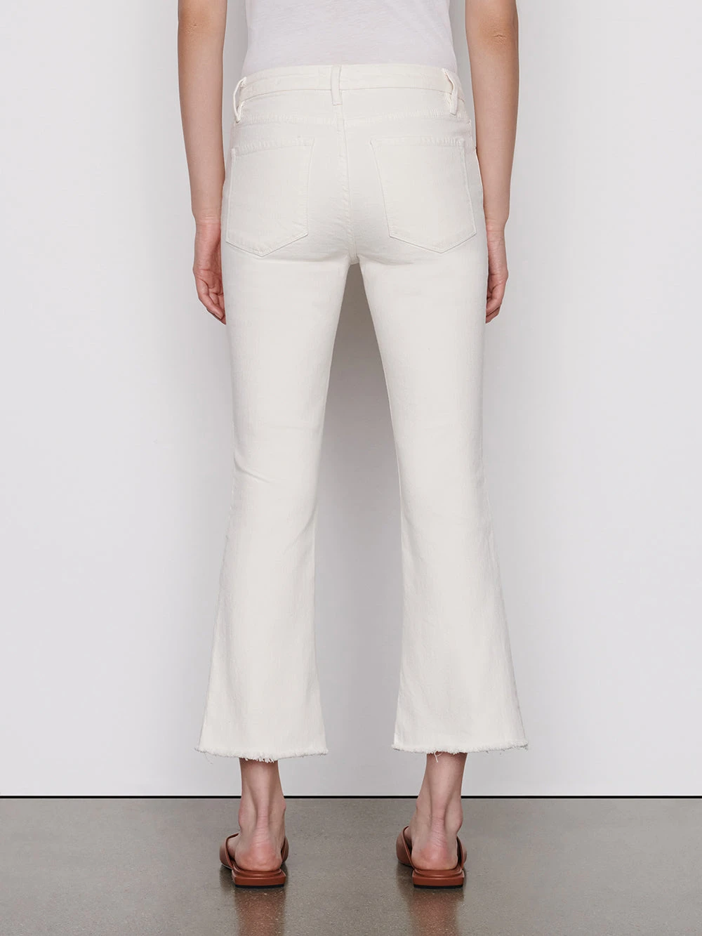 Please note: This is a Sale style. A $12 restocking fee applies for any return that includes Sale styles, deducted from the refund total. A FRAME best-selling fit, this cropped boot-cut jean is part of our Au Natural collection celebrating fabric in its purest form. The denim is made from undyed and unbleached recycled and upcycled cotton, reducing the dyeing process’s impact by eliminating toxic chemicals and reducing energy and water use. The silhouette features a comfortable contour waistband that’s form-fitting at the top and tapers out from the knee with frayed hems as the finishing touch for an undone feel.