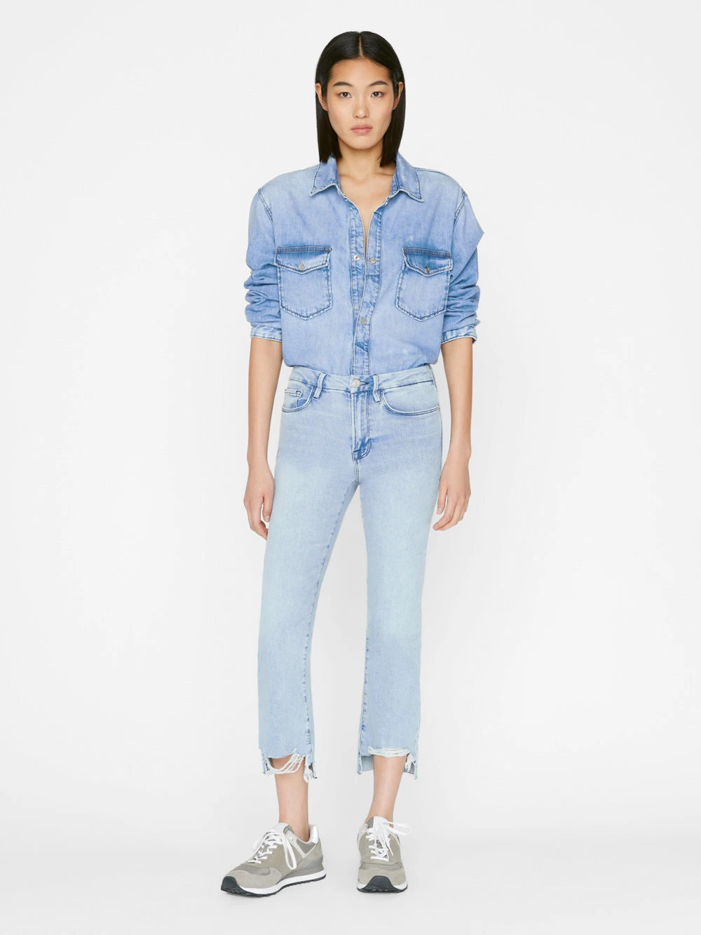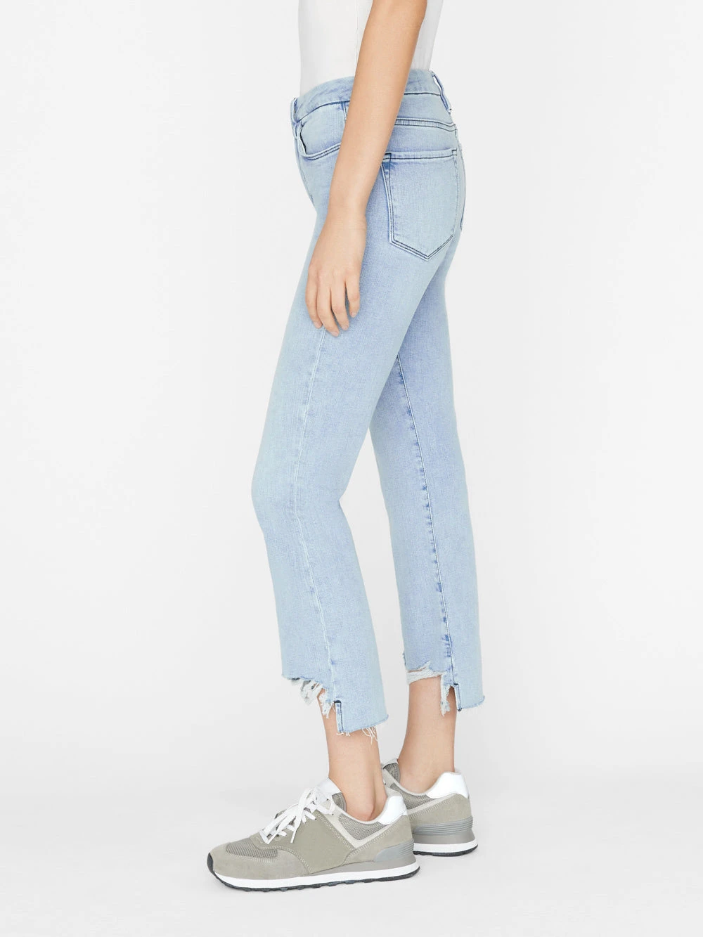 Please note: This is a Sale style. A $12 restocking fee applies for any return that includes Sale styles, deducted from the refund total. Our best-selling cropped boot-cut silhouette, crafted from premium super stretch denim in a light indigo wash and finished with a staggered raw hem. Designed with a comfortable contour waistband that’s form-fitting at the top and tapers out from the knee, this is the universally flattering jean that started the mini boot trend.