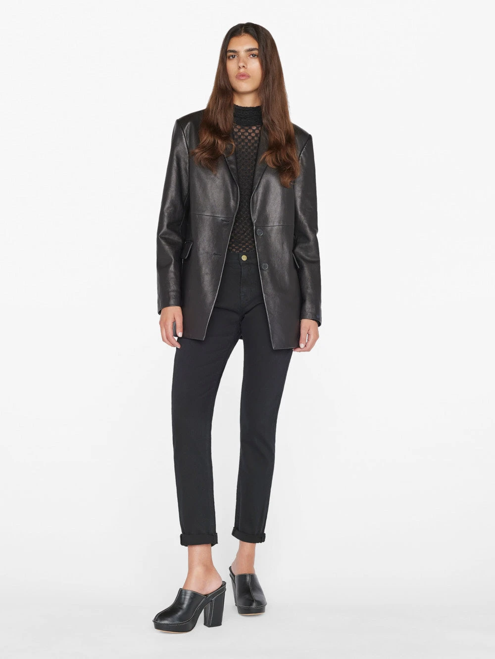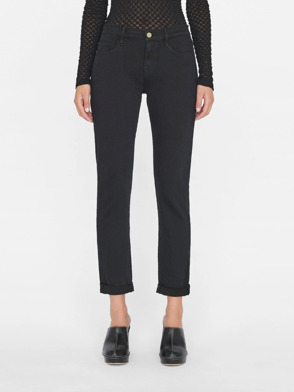 A Sophisticated Boyfriend Jean with a Tailored Straight Leg Silhouette. Crafted from Premium Black Denim with Medium Stretch.