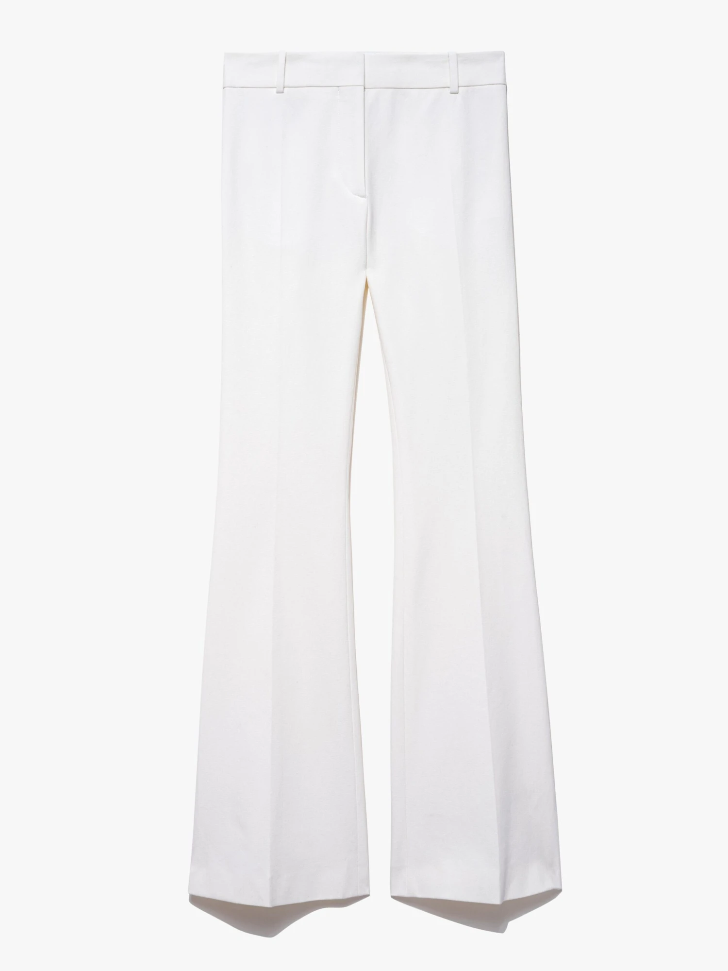 Our best-selling Le High Flare silhouette, reimagined in a bi-stretch trouser style made with sustainable materials. The high-rise fit puts a fresh spin on retro style that hugs the hips and thighs and finishes with an easy flare from the knees. Contrast the off-white Blanc hue with Breton stripes and refreshingly bright accessories.