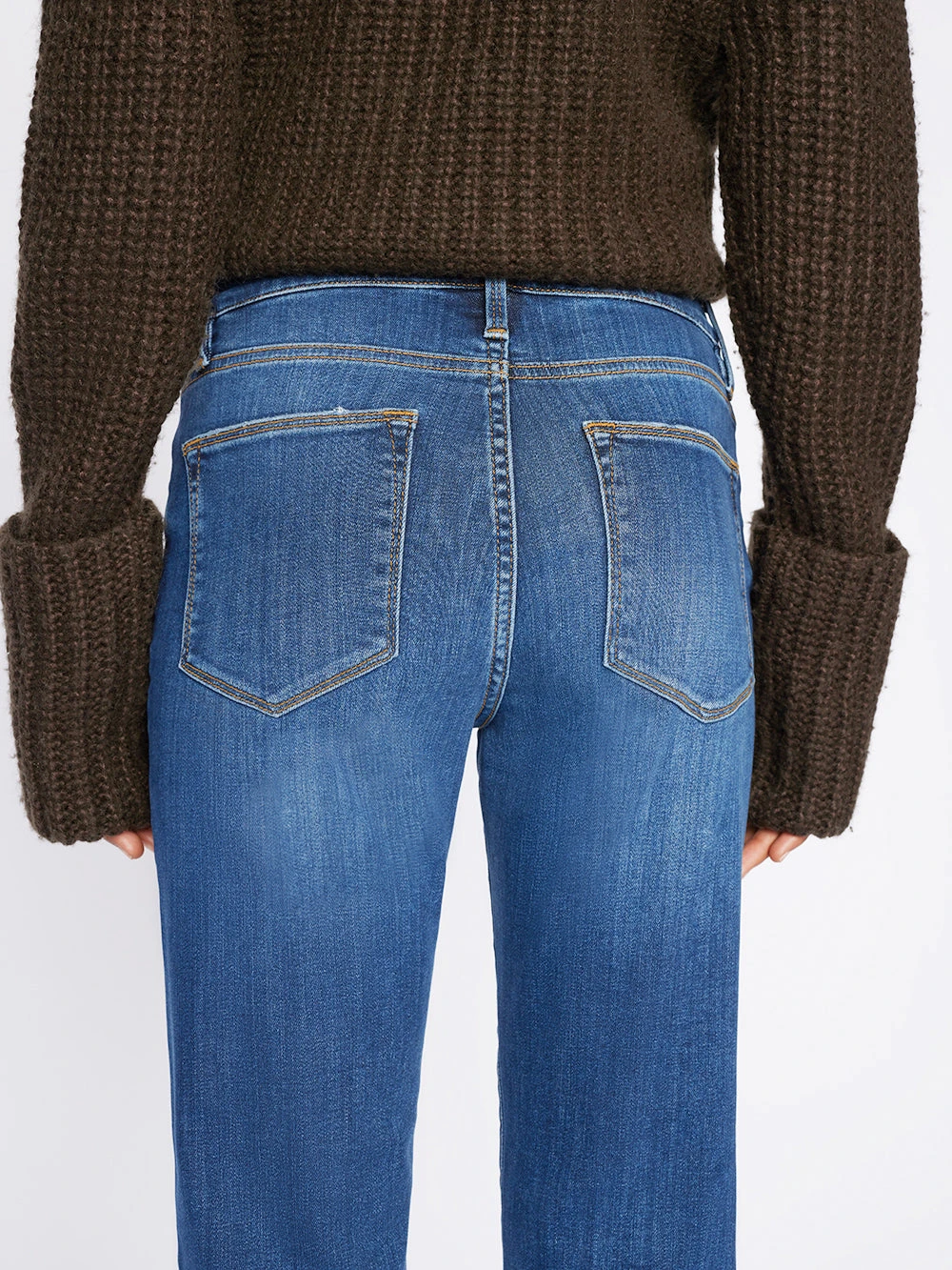 Please note: This is a Sale style. A $12 restocking fee applies for any return that includes Sale styles, deducted from the refund total. This best-selling, high-rise, straight-leg jean is designed to be subtly fitted at the waist and thighs with a nip-in at the knees. Orlena is a clean, dark blue jean crafted from comfort stretch denim and finished with a raw staggered hem.