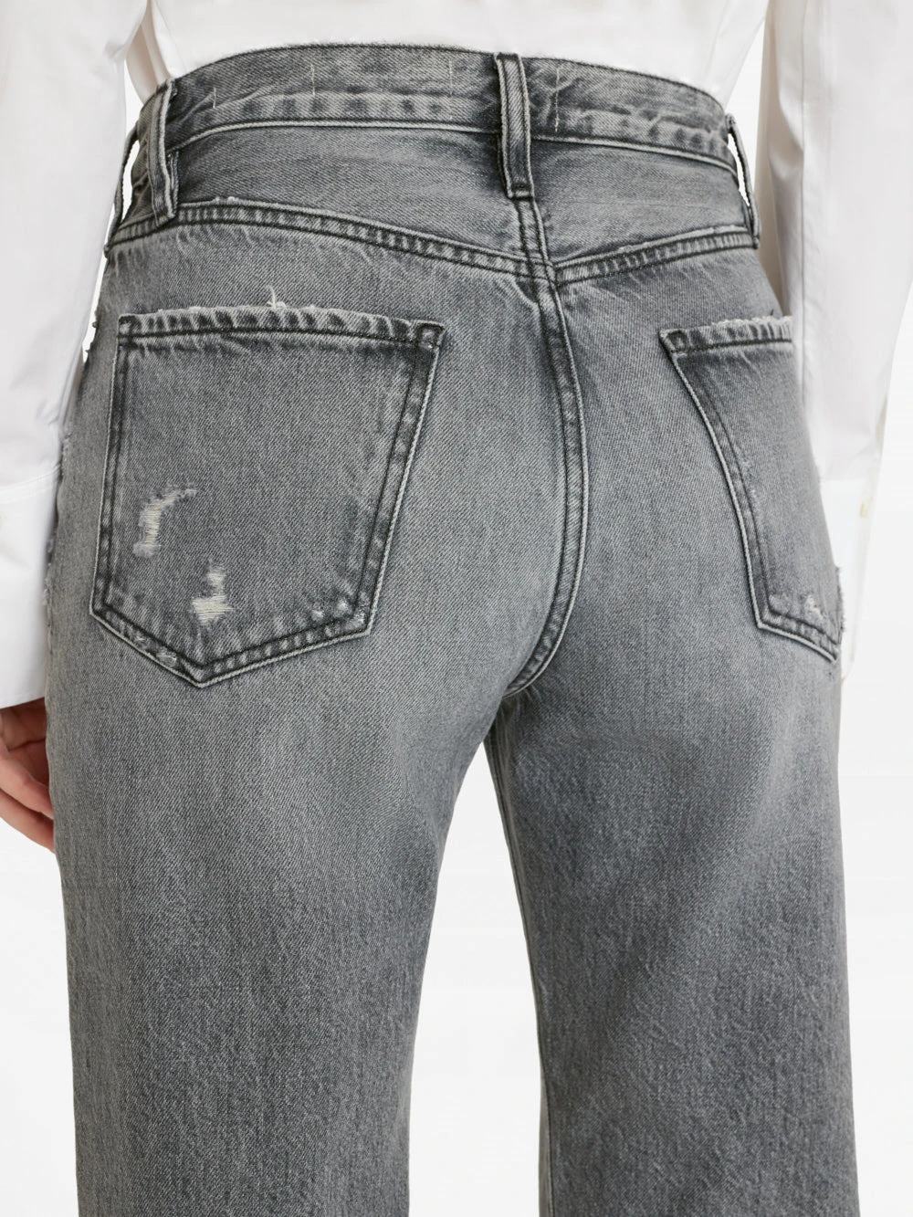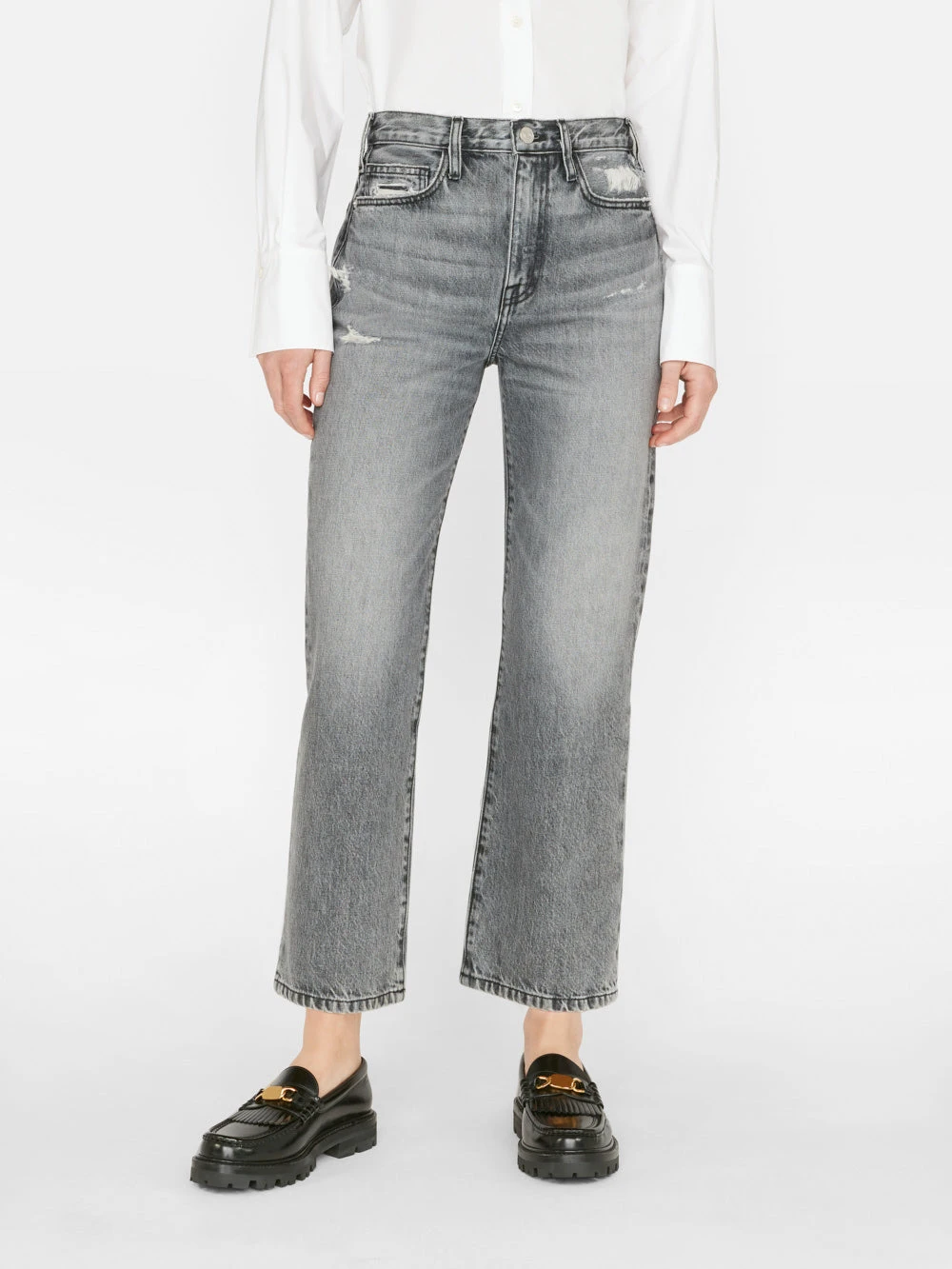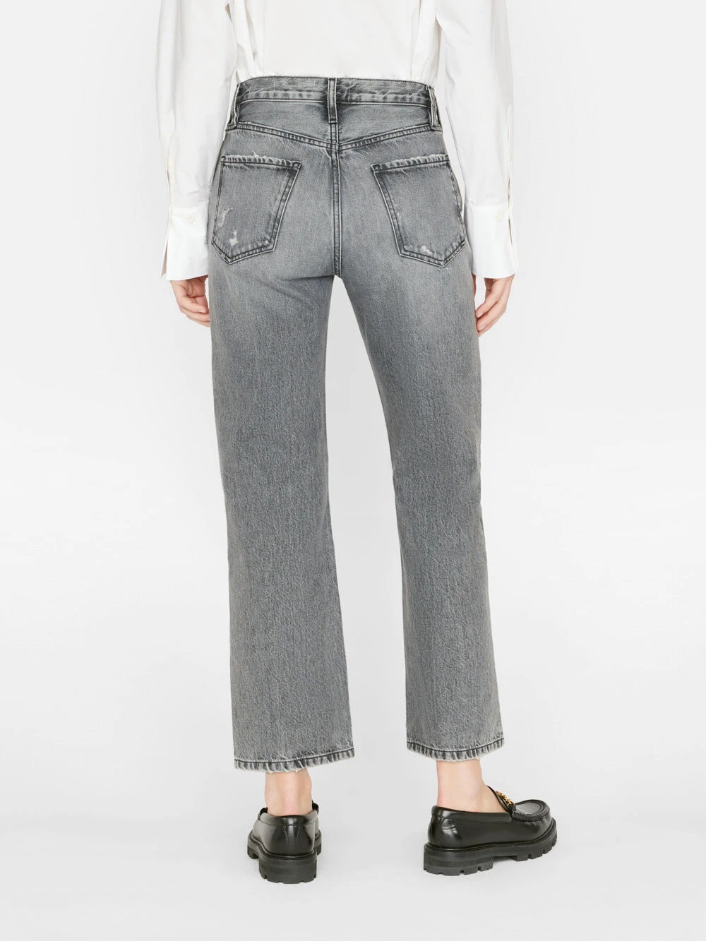 Our beloved Le Jane fit, in a flattering, on-trend crop length. This ultra-high-rise jean is fitted through the hips, slightly relaxed at the thigh, and straight through the legs for a nostalgic look. Crafted from rigid denim in washed-out grey, this pair features slight destruction and a clean hem.