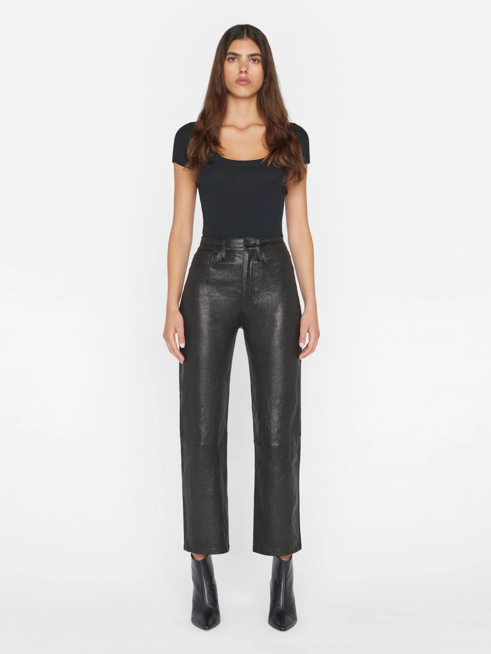 Bestselling Le Jane in a flattering cropped length. This ultra-high-rise pant is fitted through the hips, slightly relaxed at the thigh, and straight through the legs. Crafted from supple, 100% lamb leather.