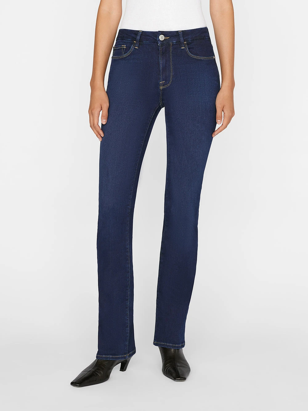 Please note: This is a Sale style. A $12 restocking fee applies for any return that includes Sale styles, deducted from the refund total. Our Bestselling Le Mini Boot style, crafted from super stretch denim in a blue-black wash. This pair features silver hardware for an elevated look that can be dressed up or down. With a universally flattering mid-rise waist and full length inseam, this clean, classic silhouette defies trends and gets better with every wear.