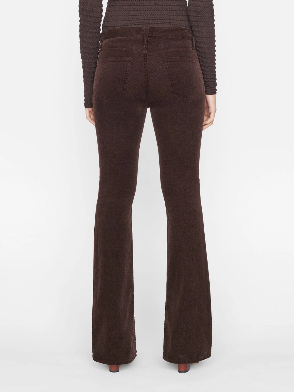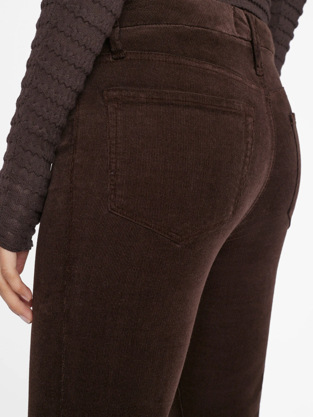 A FRAME signature jean with contour mid-rise waist, form-fitting silhouette at the hips, and slight bootcut kick at the knee, now available with peekaboo side ankle slits on the inseam. Crafted from a cotton modal mini corduroy for an ultra-soft feel.