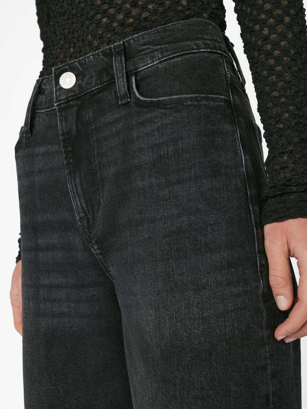 A FRAME introduction to the bestselling palazzo silhouette designed with a comfortable high rise waist, fitted hip, and subtle wide-leg flare. Crafted from a sustainable comfort stretch denim that offers a vintage, lived-in feel upon first wear.