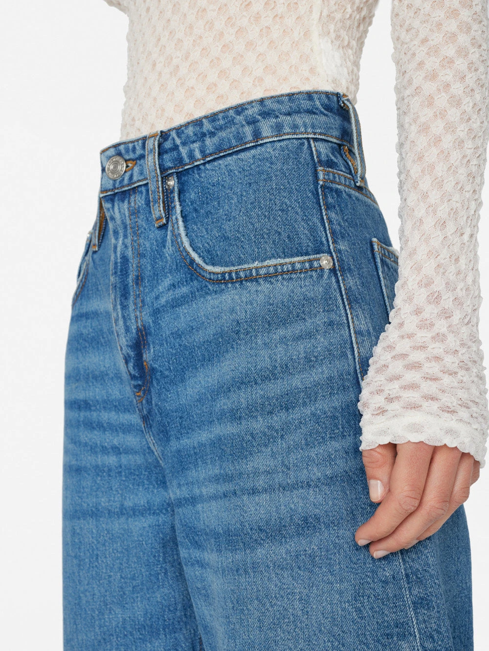 The FRAME favorite ultra-high-rise barrel jean designed with curved seams and a universal 30″ inseam. Crafted from a rigid sustainable denim that breaks into a beautiful lived-in feel.