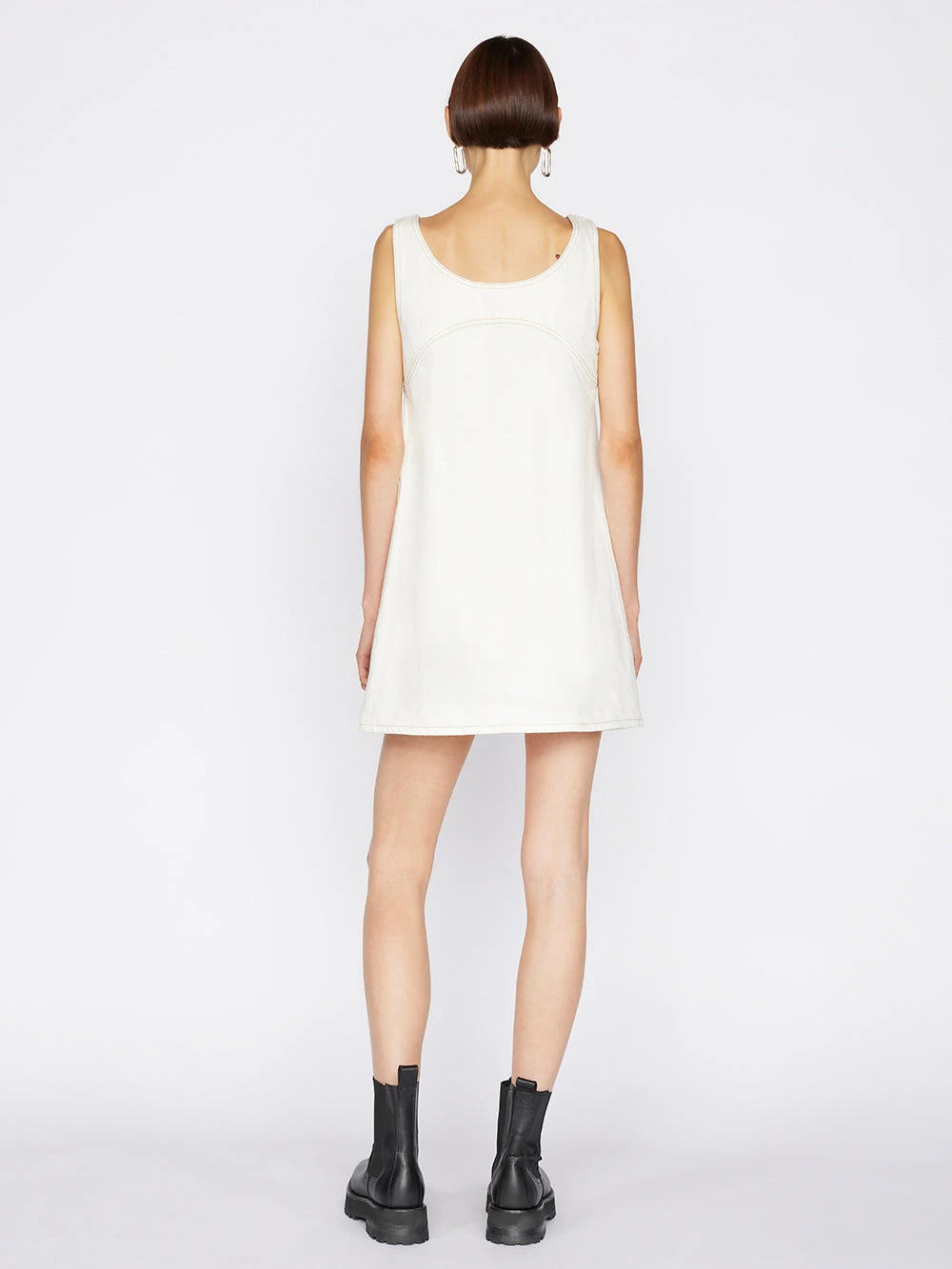 This ‘90s-inspired scoop-neck minidress features a flared skirt in a modern micro length. Perfect for nights out, layering with tights and a leather moto jacket or trench, and tucking into your suitcase for last-minute getaways. Crafted from rigid denim in essential Ecru.