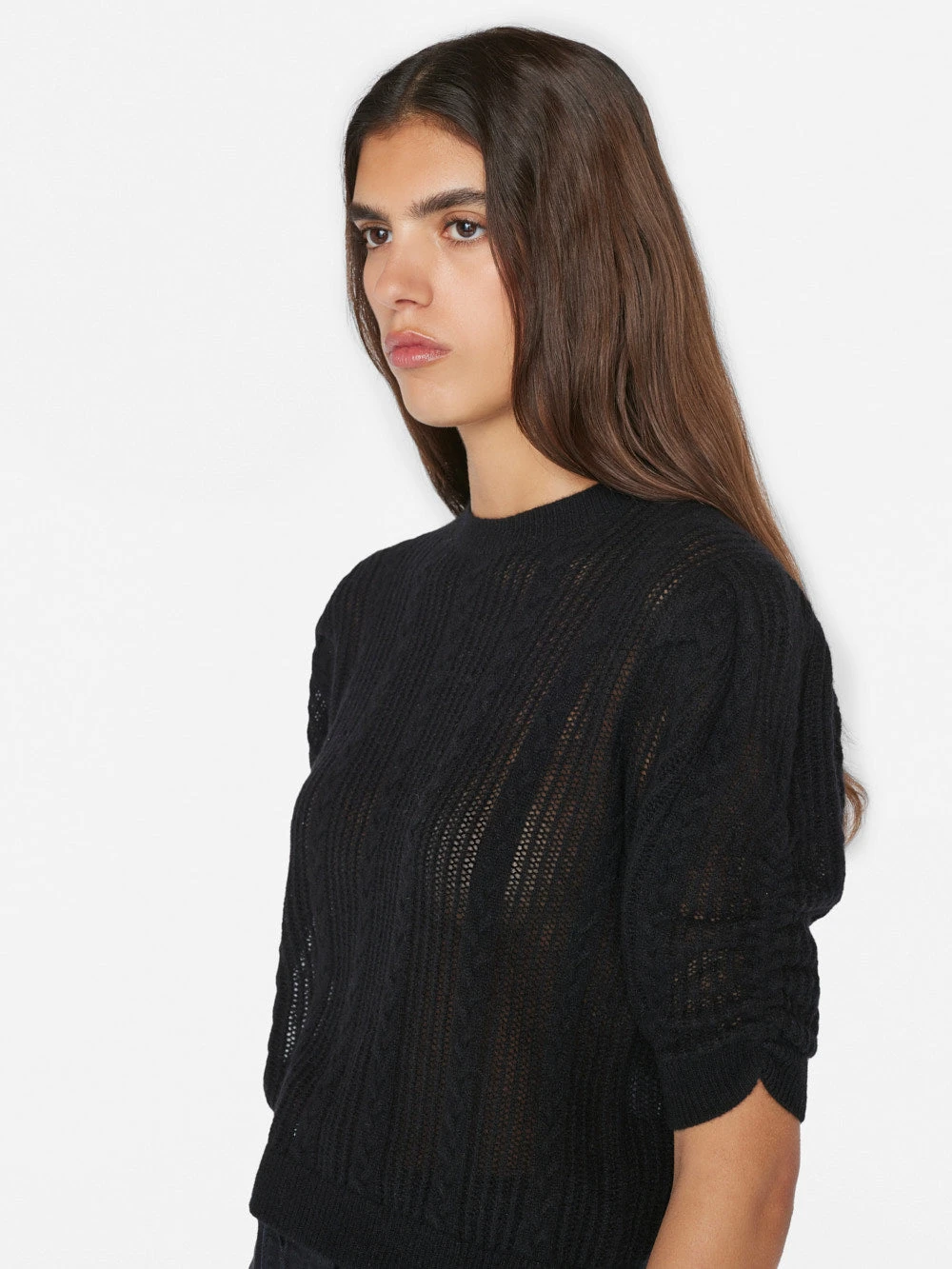 Be the first to review “Pointelle Cashmere Ruched Short Sleeve Sweater — Noir” Cancel reply