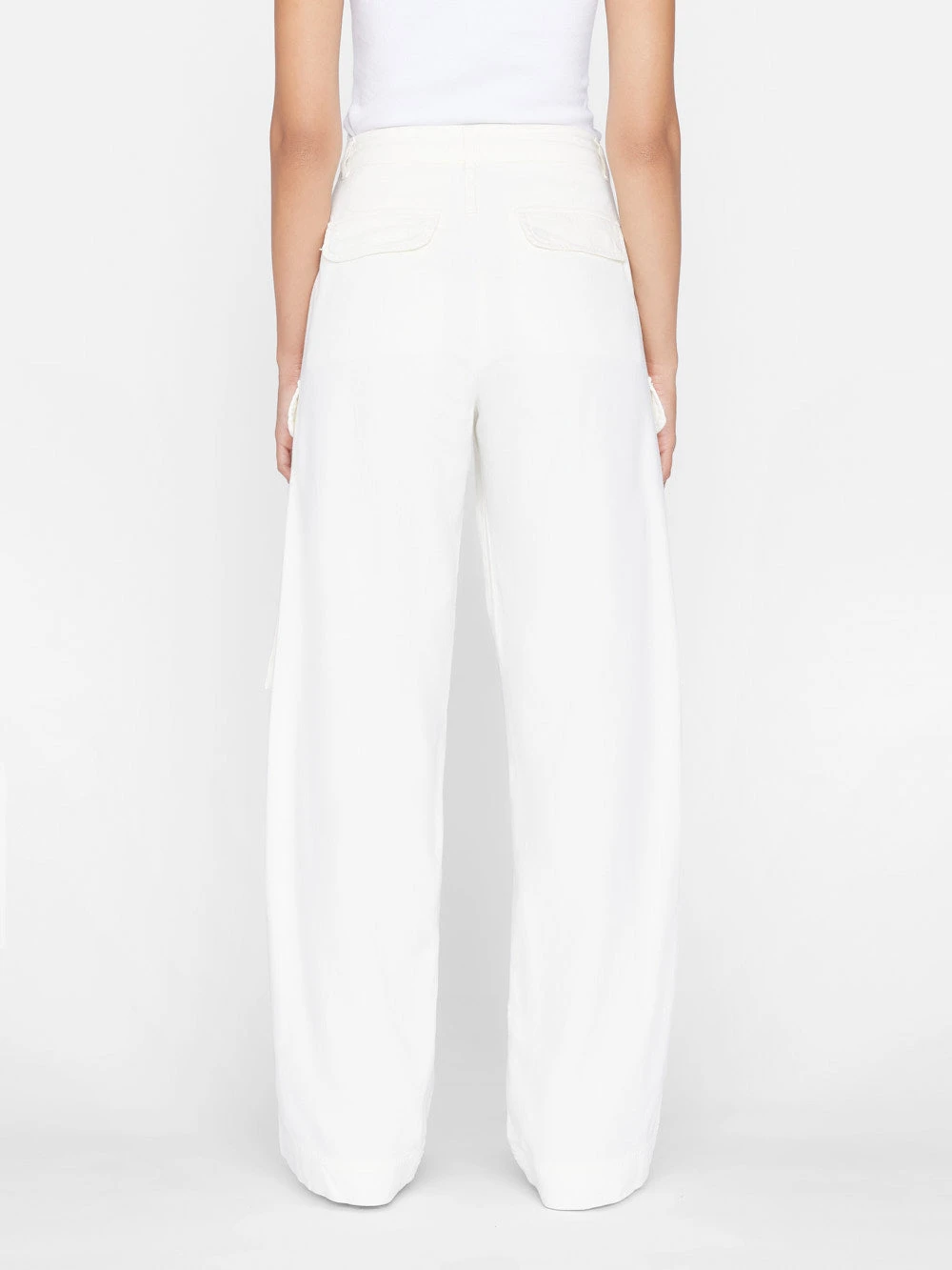 A chic, feminine nod to utilitarian style, this high-rise, wide-leg cargo pant is done in ecru, lightweight, denim and features a relaxed fit. Pair it with a silk button-down and heels for office outfitting, or a white tee and sandals for casual farmer’s market mornings.