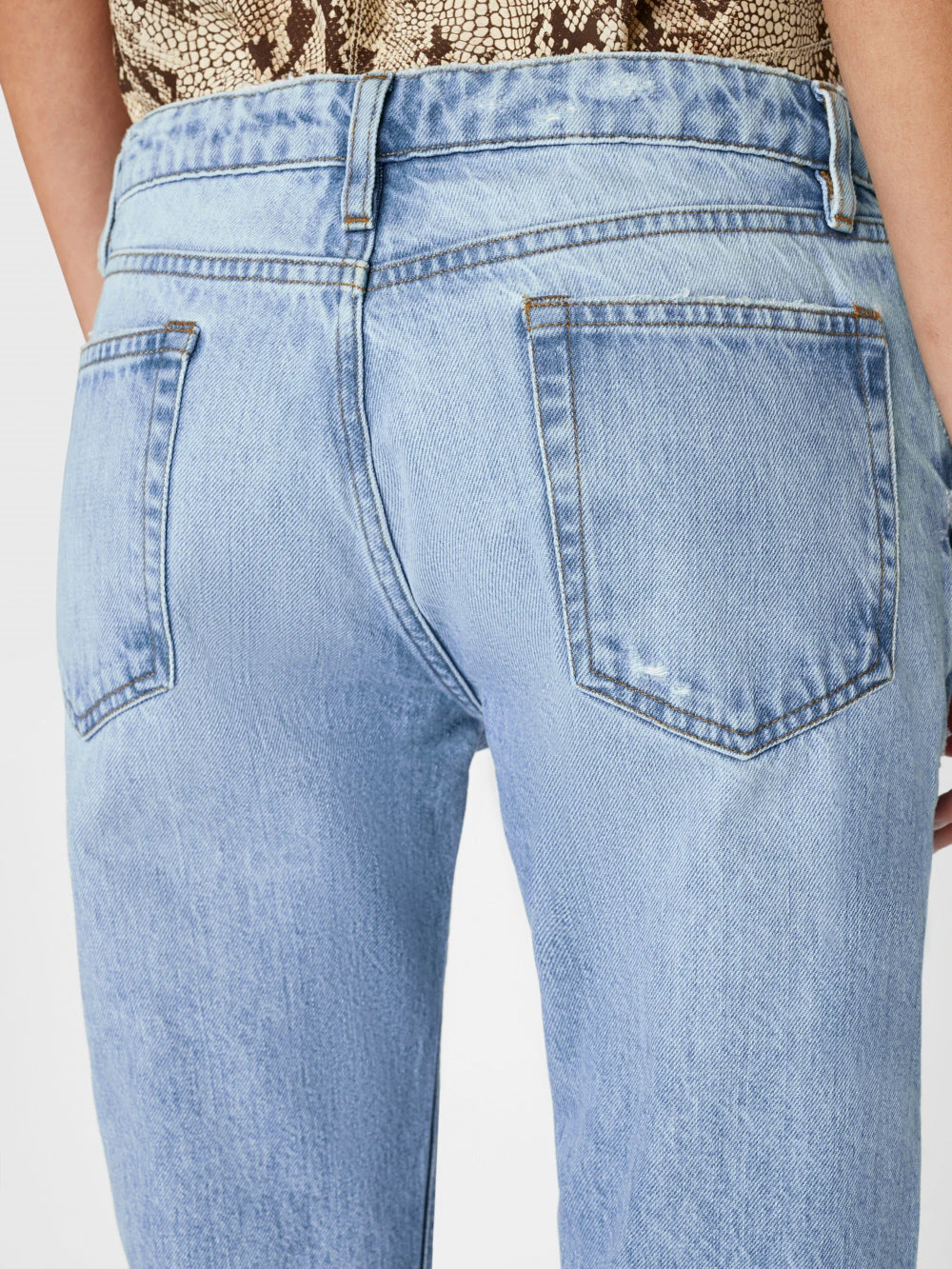 Please note: This is a Sale style. A $12 restocking fee applies for any return that includes Sale styles, deducted from the refund total. Low-rise denim is officially back. This fit hits low on the hips and features a curve-hugging fit through the waist and thighs, plus a bootcut hem for a very flattering nod to the 90s. Rossum is a vintage-inspired, light and bright indigo wash crafted from rigid denim, with slight distressed details for a lived-in look.